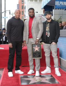 50 Cent has received a star on the Hollywood Walk of Fame and it was quite a ceremony, with appearances from Eminem and Dr Dre and, unexpectedly, a diss at noughties rock band Evanescence.