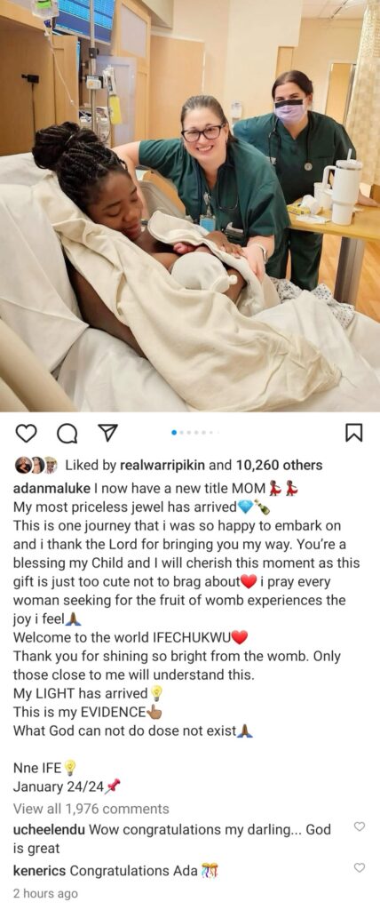 Congratulatory messages are pouring in for actress Adanma Luke as she announces she has welcomed her first child.