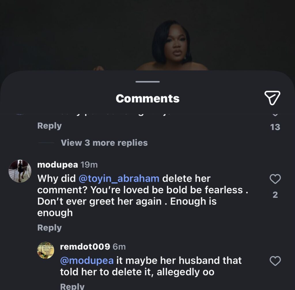 Toyin’s husband has now publicly thanked her for listening to him and choosing not to speak.