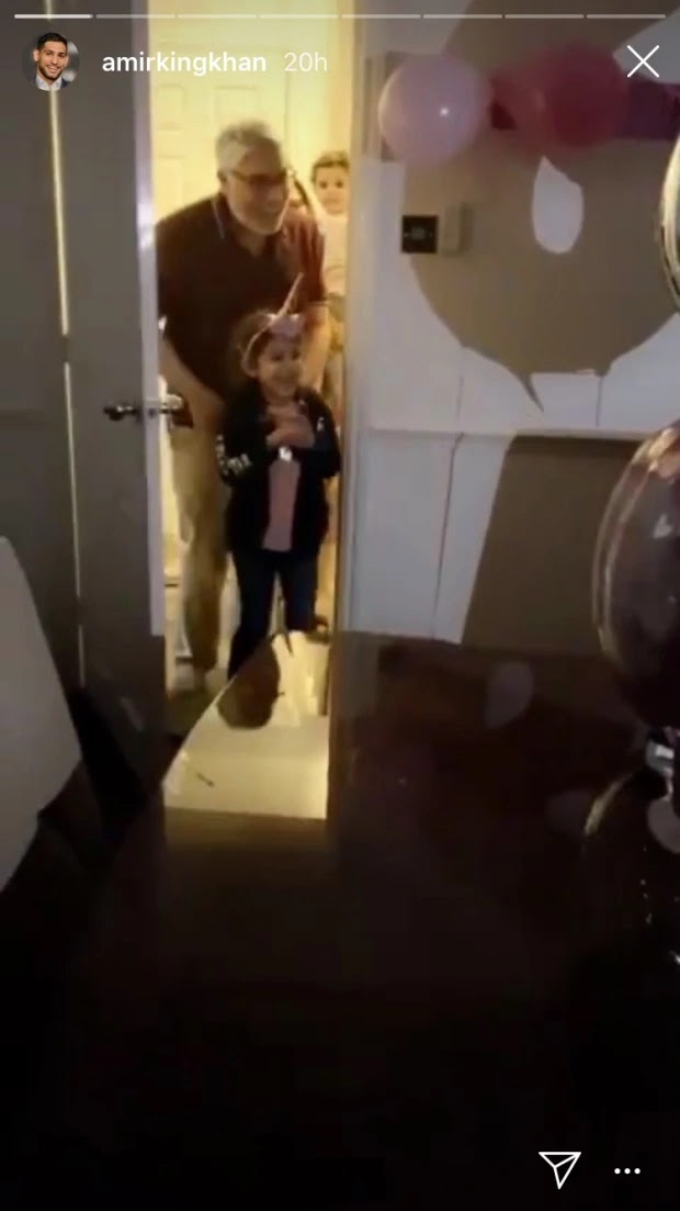 The boxing champ met his family in Bolton this week for an emotional reunion, and also shared a video of a surprise party for his daughter.
