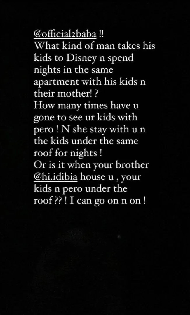 The actress also called out Tuface’s brother, Hyacinth Idibia, for housing the singer, his kids and Pero under the same roof.