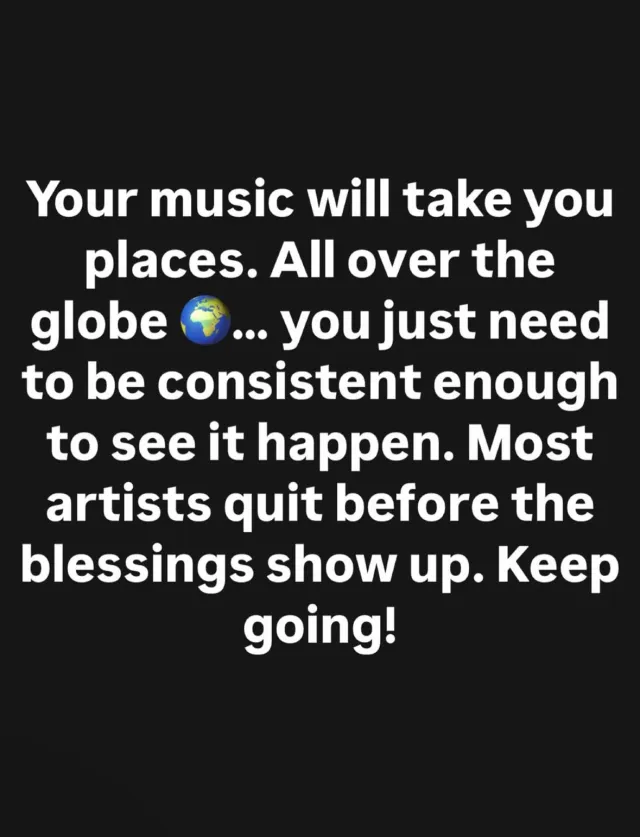 He wrote: “Your music will take you places. All over the globe… you just need to be consistent enough to see it happen. Most artists quit before the blessings show up. Keep going!”