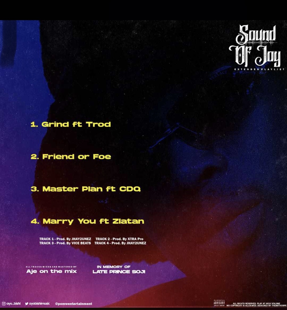 Buzzing Nigerian singer , Ayo Bishi finally releases his long anticipated EP titled “Sounds Of Joy” .