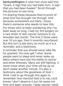 The R&B singer stated that this will be his third surgery and while the surgery will leave scars, they’re also a reminder of his testimonies and proof of what God has “brought him through”, urging people to be more appreciative of the life they have for now as life has no guarantee for anyone.