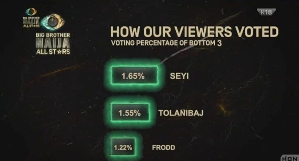 Tolanibaj and Frodd were evicted from the Big Brother Naija house today, August 27.