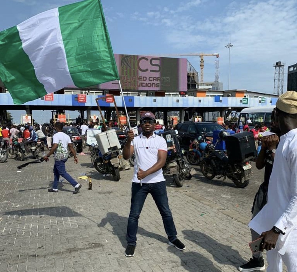 The talented musicians were spotted at the Lekki – toll gate flying the flag of Nigeria in solidarity.