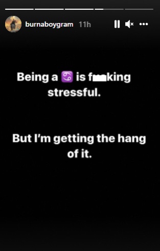 Burna Boy is complaining bitterly about his zodiac sign, saying being a cancer is stressful.