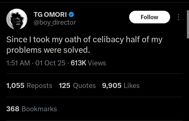 Music video director, TG Omori has shared that embracing celibacy has significantly improved his life