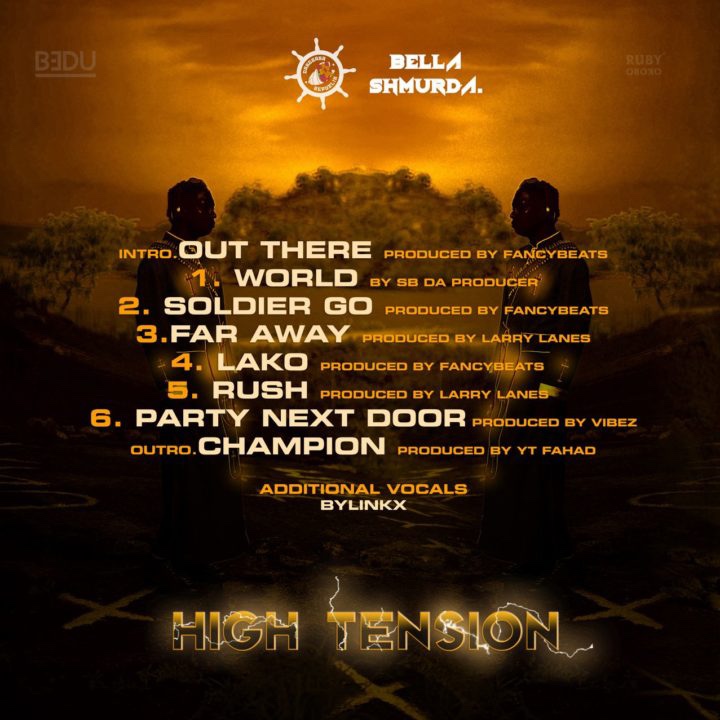 Bella Shmurda defines ’High Tension’ as ”new light in a new form, high voltage lightning that strikes against all odds, a star that cannot be stopped from shining and a power that always penetrates.” This powerful imagery symbolises his journey in music so far and echoes the creation process of this incredible body of work.