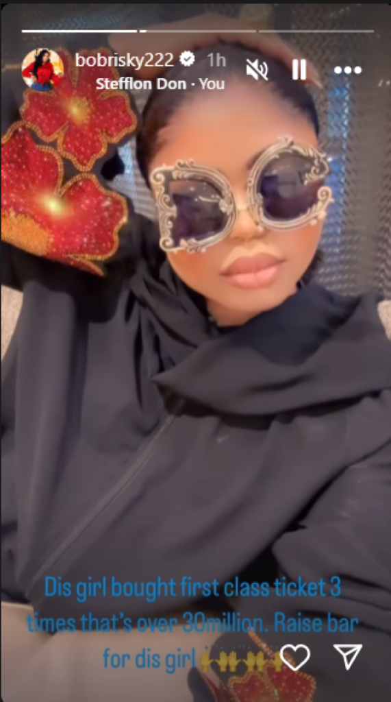 Hear him; “Dis girl bought first class ticket 3 mes that’s over 30 million. Raise bar for dis girl.”