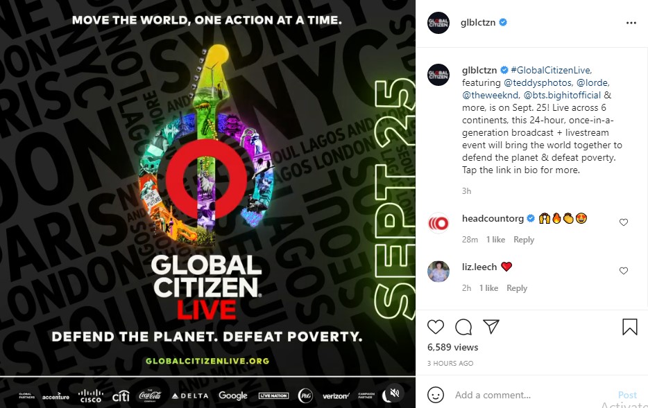 #GlobalCitizenLive, featuring @teddysphotos, @lorde, @theweeknd, @bts.bighitofficial & more, is on Sept. 25! Live across 6 continents, this 24-hour, once-in-a-generation broadcast + livestream event will bring the world together to defend the planet & defeat poverty. Tap the link in bio for more.