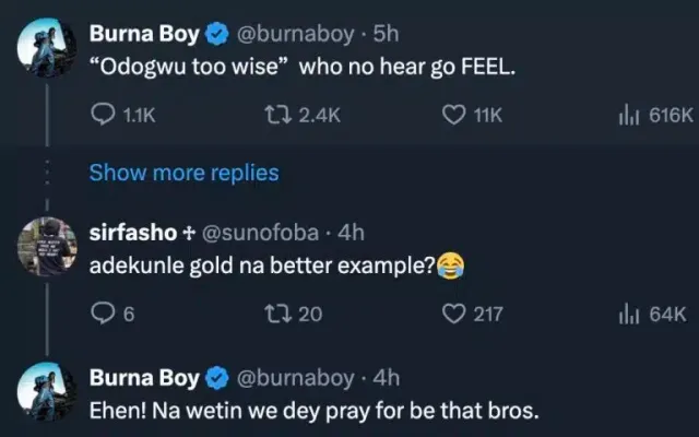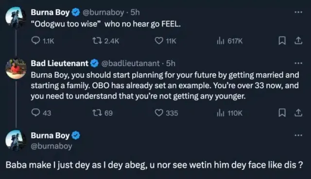 When a concerned fan advised him to consider marriage and starting a family, Burna Boy emphasized his desire to maintain his single status, referencing the challenges faced by others in the industry.