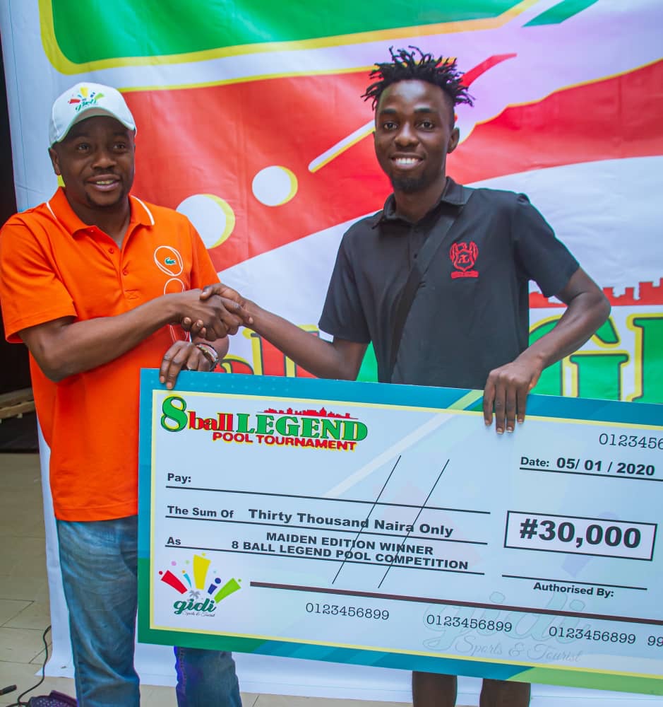 Samuel Osuntope, Winner Maiden Edition 8-Ball Legend Pool Tournament.
