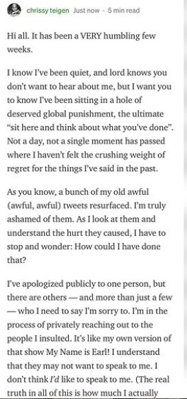 Chrissy announced in March that she was leaving Twitter because it was bringing out the worst in her. She returned to the platform 3 weeks later.