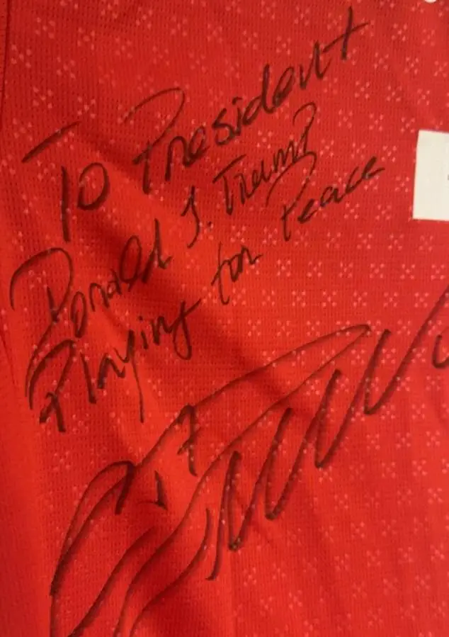 But evidently he took time out to sign the shirt presented to Trump, delivering a message during a hugely concerning time in terms of global security.