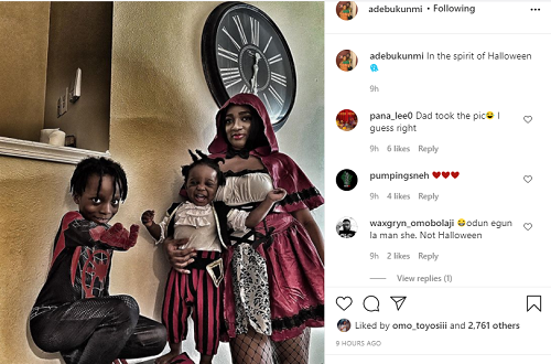 Olamide’s partner, Adebukunmi has shared a photo of herself and their two children, rocking their Halloween costumes.