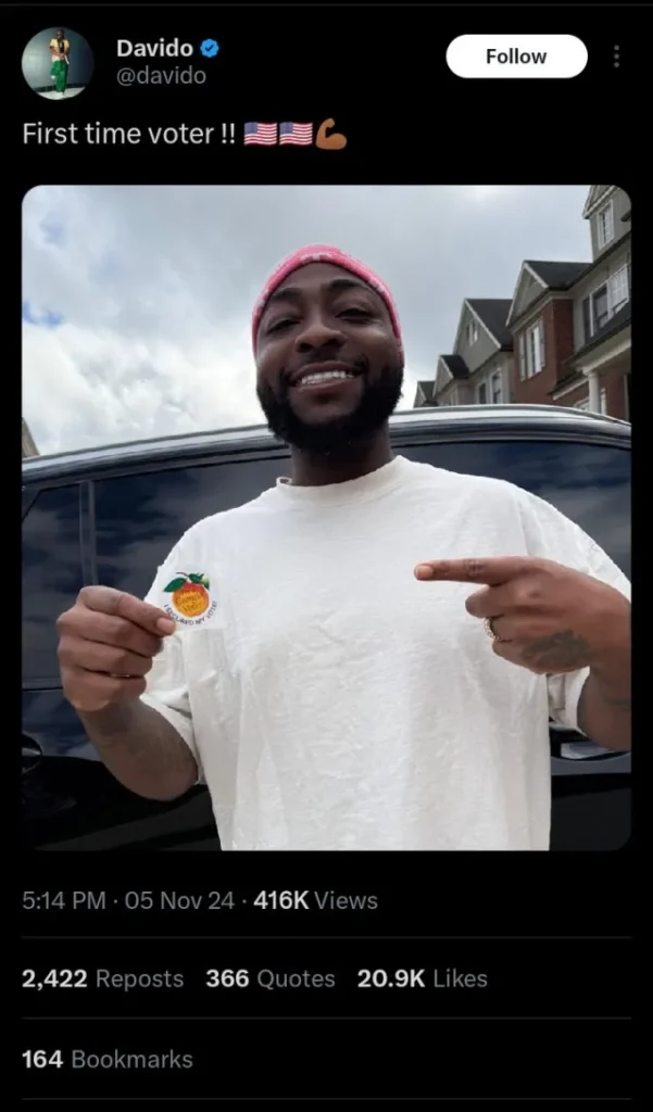 Though he didn’t disclose who he voted for, he however admits it’s the first time he will be voting as a US Citizen.
