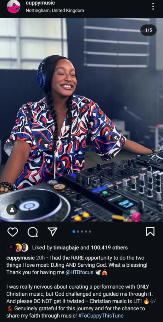 DJ Cuppy reveals gratitude for the opportunity to combine her passions, DJing and serving God, at a recent event.