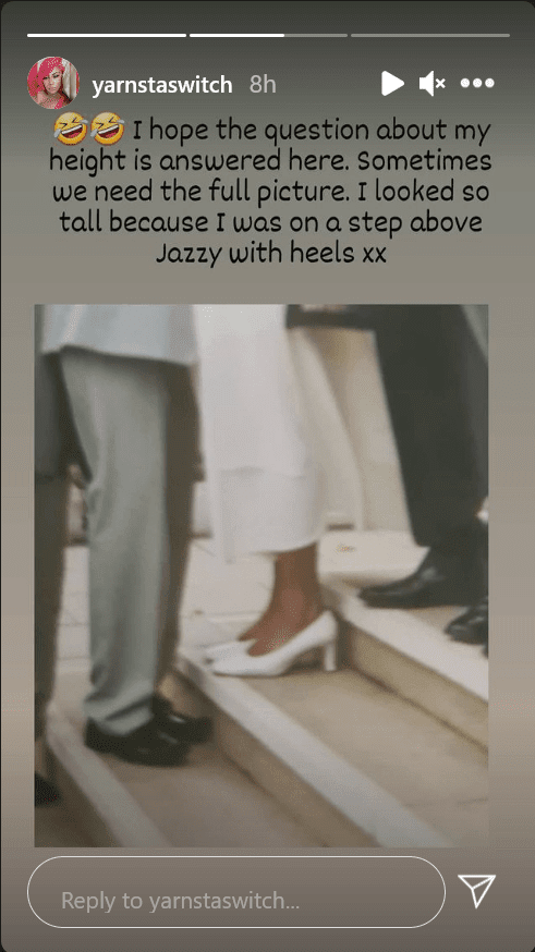 Michelle has now decided to put a stop to it saying it was because she was on a stair above him and wore heels.