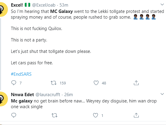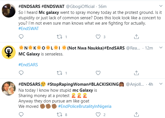 So Mc Galaxy out did himself today when he threw out N200 notes at ENDSARS protesters in Lekki.