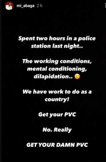 Rapper M.I Abaga has asked Nigerians to get their PVCs after spending 2 hours at a police station yesterday.