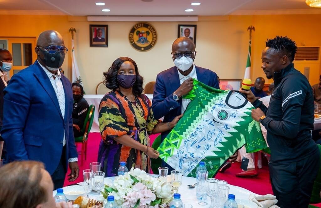 Football is a national treasure for us as Nigerians and Lagos has historically favoured the Super Eagles so we wished them well with prayers and good cheer. Sanwoolu , Facebook , 2021See Photos from the reception.