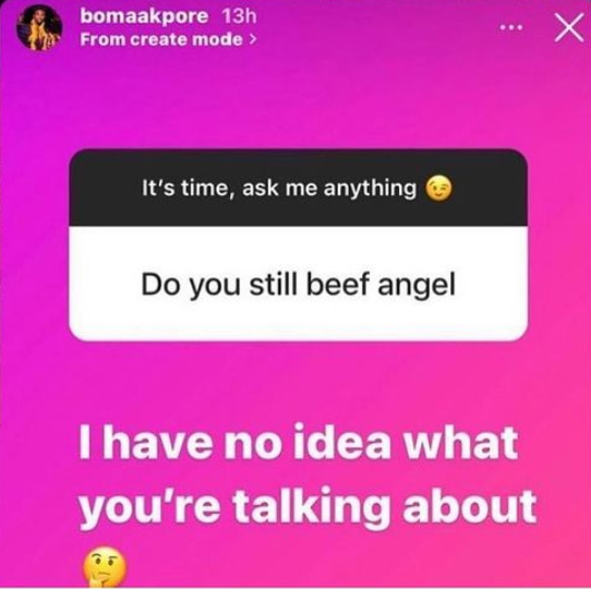 Big Brother Naija reality show star, Boma has responded after he was asked if he is still beefing co-reality show star, Angel who he had a messy clash with at the just concluded reality show.