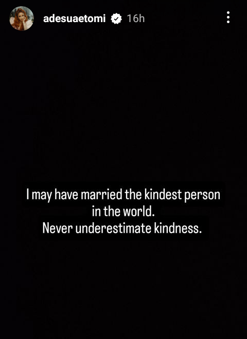 “I may have married the kindest person in the world. Never underestimate kindness,” she wrote on her Instagram story on Tuesday.