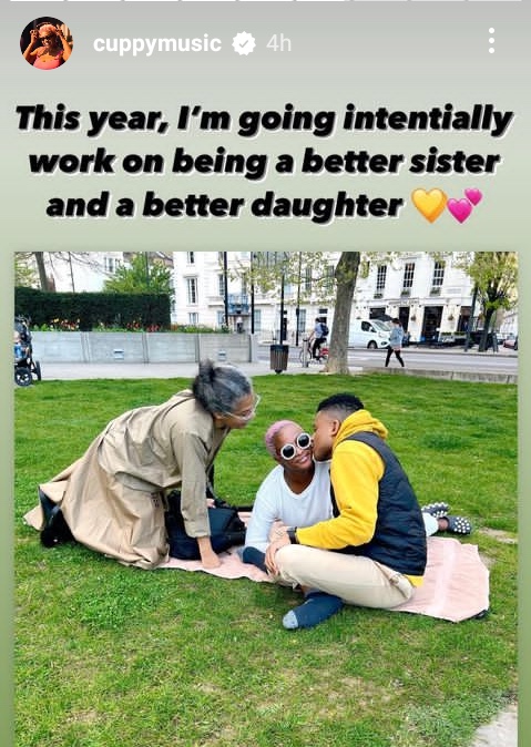 DJ Cuppy has vowed to work on being a better sister and daughter this year.