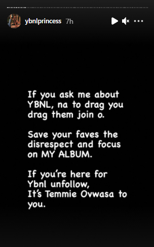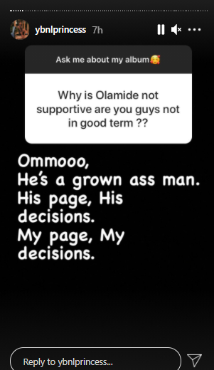 YBNL Princess who rapper Olamide signed in 2016 to his record label YBNL has hinted all his not well between them.