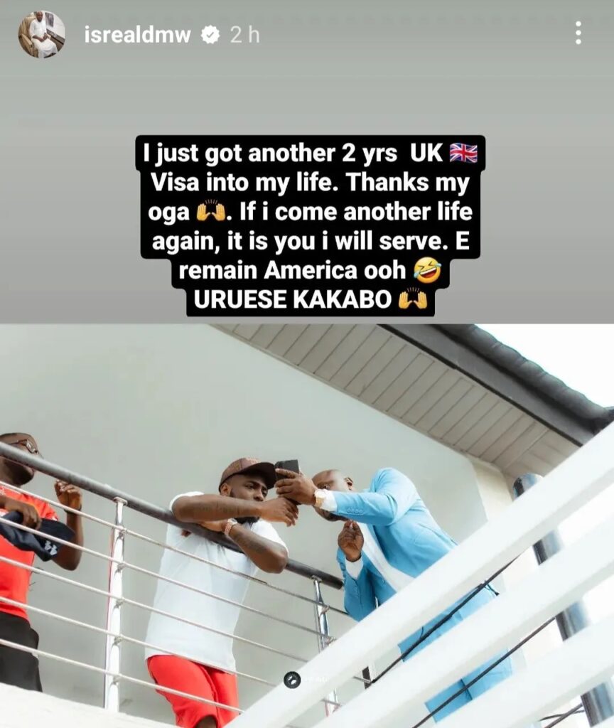 Israel Afeare popularly known has Isreal DMW has affirmed that he will serve Davido even in his next life.