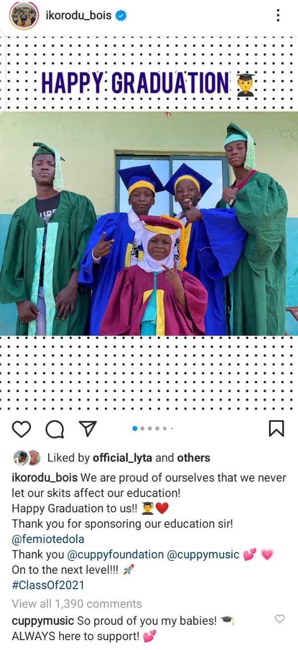 Ikorodu Bois have just graduated from basic school and they are thanking billionaire Femi Otedola and his daughter DJ Cuppy, who runs a foundation for making them have a basic education.