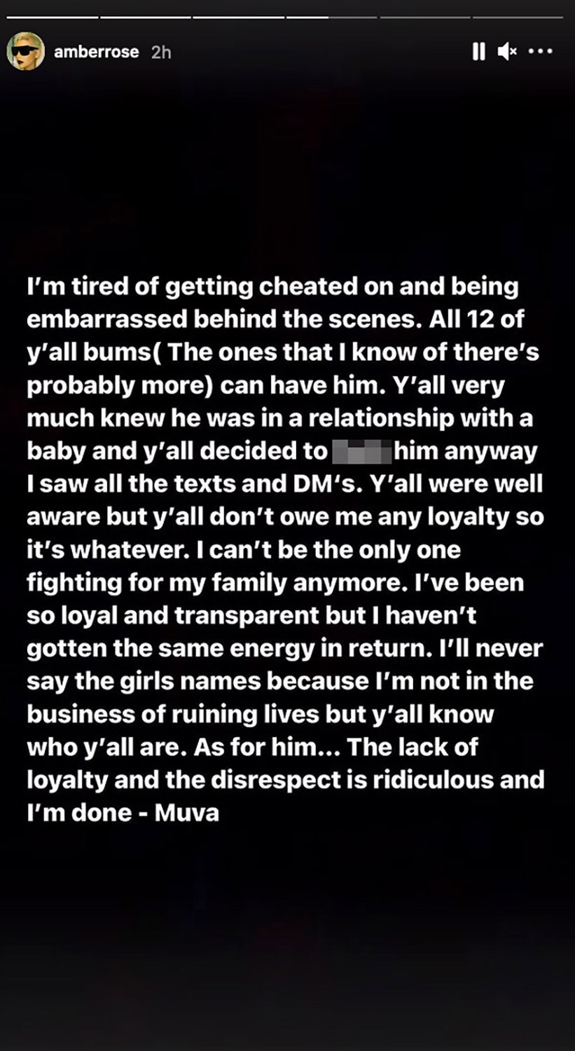 I can’t be the only one fighting for my family anymore. I’ve been so loyal and transparent but I haven’t gotten the same energy in return,” she wrote. “As for him… The lack of loyalty and the disrespect is ridiculous and I’m done.”