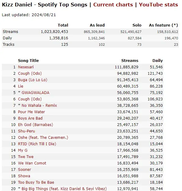 By surpassing 1 billion Spotify streams, Kizz Daniel joins an elite group of Nigerian artists who have reached this milestone, solidifying his position as a leading figure in the music industry.