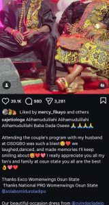 “Alihamudulilahi… Baba Dada Oseee,” she joyfully wrote, expressing gratitude for the beautiful experience.