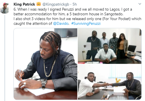 6. When I was ready I signed Peruzzi and we all moved to Lagos, I got a better accommodation for him, a 5 bedroom house in Sangotedo.