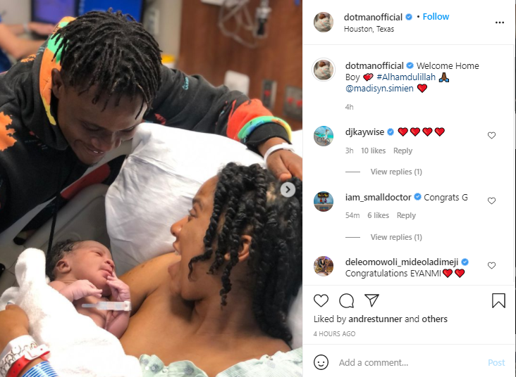 Singer Olatunji Oladotun Alade, popularly known as Dotman, has welcomed a baby boy with his girlfriend. He shared the good news on his Instagram page.