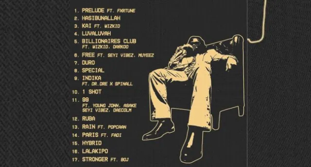 The album includes previously released tracks “Kai” (feat. Wizkid) and “99” (feat. Asake, Seyi Vibez, Young Jonn, and Daecolm)