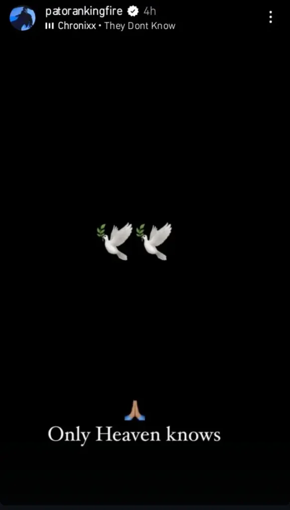 Following their burial, Patoranking, via his Instagram story, shared a photo of a hand emoji as he stated that only heaven knows.