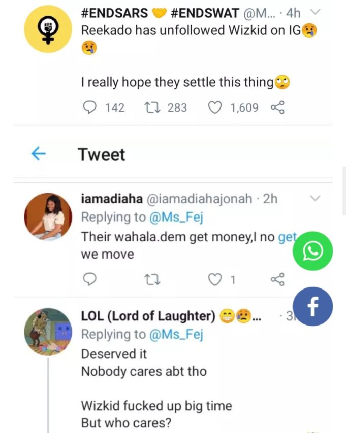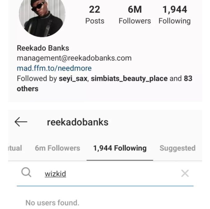 After Wizkid blasted Reekado Banks, the singer has now unfollowed him on Instagram in a form of protest.