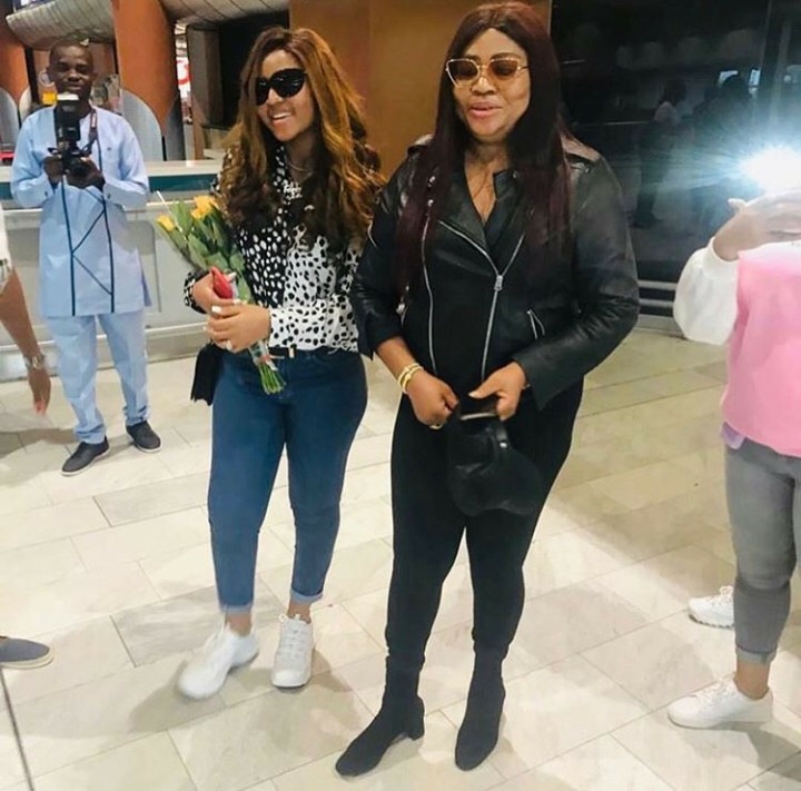 In these photos, the actress and her mom, Rita Daniels are seen being welcomed to Cape Town as they pose for the camera. More photos below…