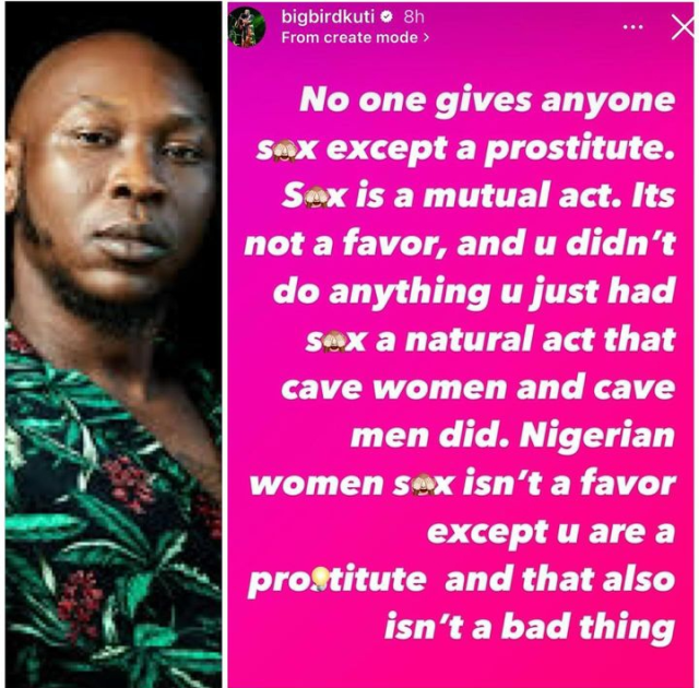 Seun Kuti has shared thought-provoking comments on Instagram, challenging societal norms surrounding sex and relationships.