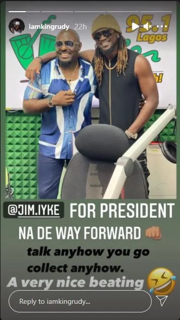 Reacting to the video, Okoye on Wednesday took to his Insta Story to declare Iyke for president while applauding him for his attack on Maduagwu.