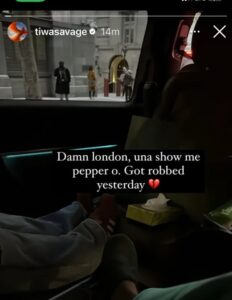 Sharing the sad news, she wrote; “Damn london, una show me pepper o. Got robbed yesterday”.