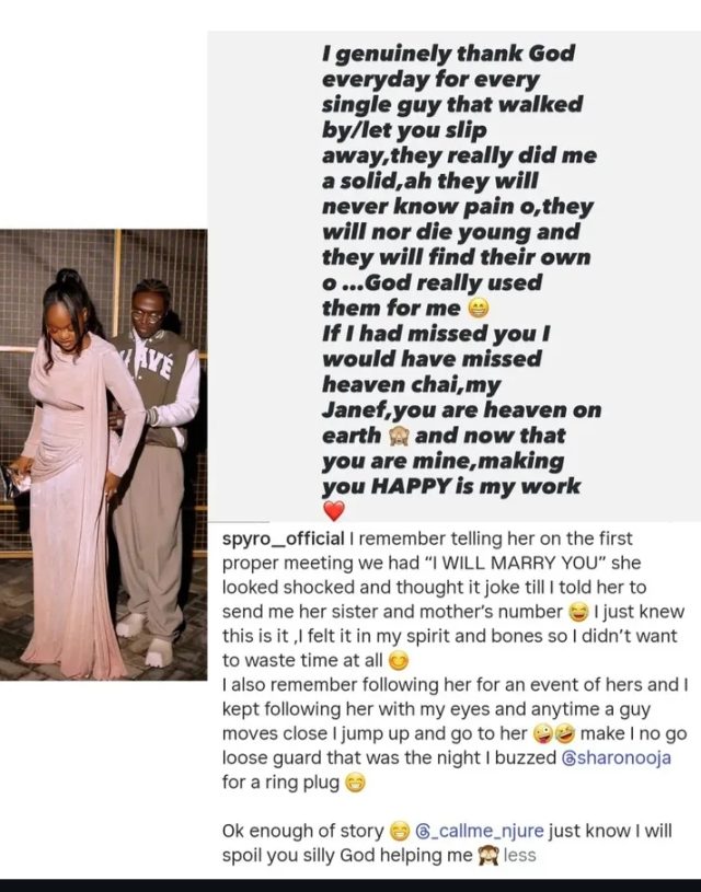 Affectionately calling her “my Janef” and “heaven on earth,” Spyro promised to make her happiness his life’s work. “Just know I will spoil you silly, God helping me,” he concluded, offering a glimpse into the love and devotion he feels as they prepare for marriage.