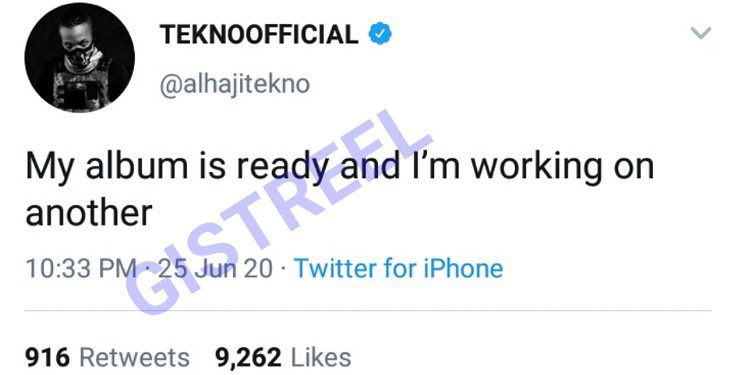 Popular Nigerian singer, Augustine Kelechi Miles also known as Tekno has said he is set to release his first music album.