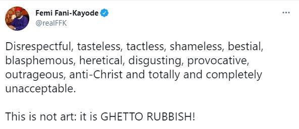 Fani in a twitter post described Toyin Lawani’s outfit as Ghetto rubbish, disrespectful and anti-christ,