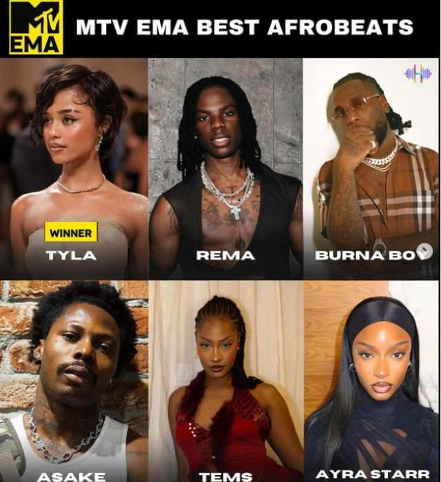 Tyla edged out stiff competition from Rema, Tems, Asake, Ayra Starr, and Burna Boy to claim the coveted award.