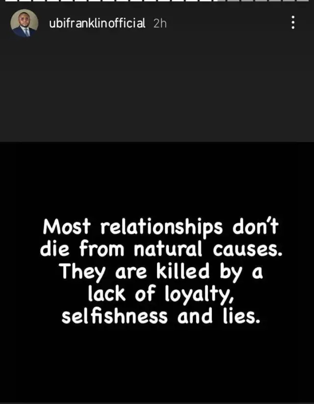 Reacting on his insta-story, Ubi wrote;