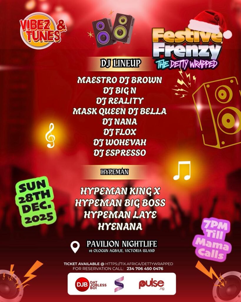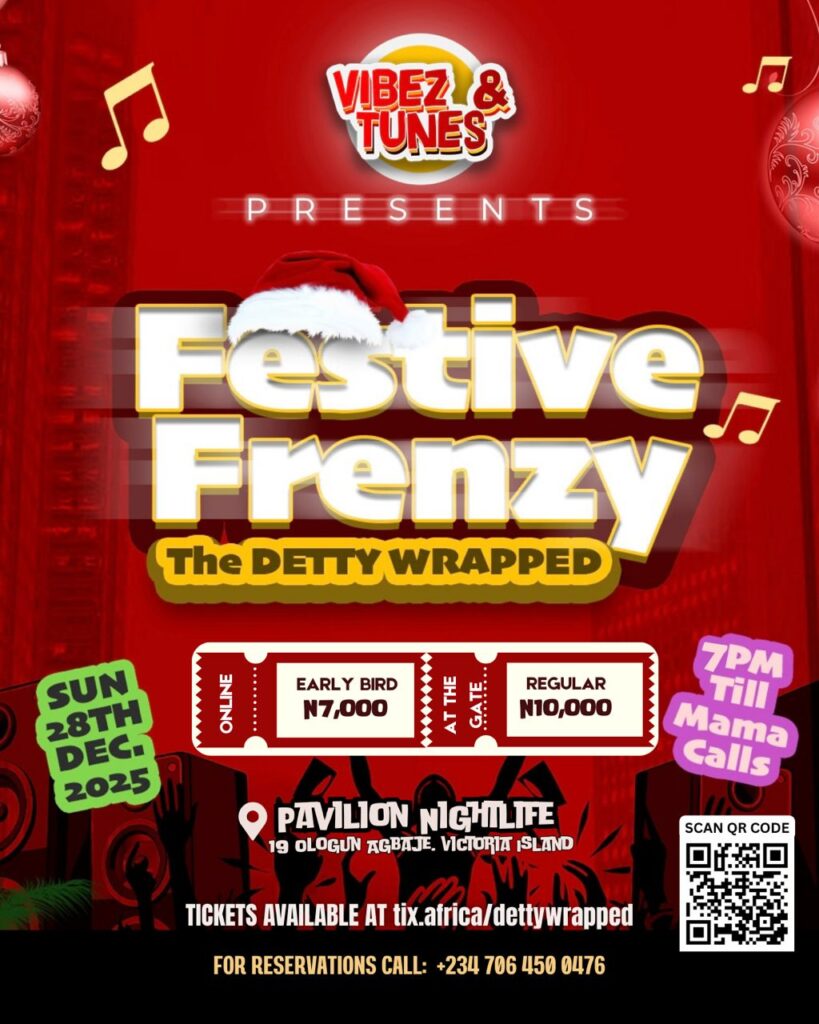 The event is set to light up Pavilion Nightlife, 19 Ologun Agbaje, Victoria Island, Lagos ensuring a vibrant and safe atmosphere for all attendees. To secure your spot at Lagos’ biggest December party, make your reservations via WhatsApp at +2347064509476.